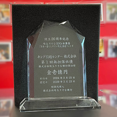 埼玉りそな銀行が発行する『日本一暮らしやすい埼玉』推進ファンドの私募債発行により、「埼玉版SDGs」の重点分野である「環境」「子育て」「医療支援」へ私募債の手数料の一部を寄付先とした活動に賛同。